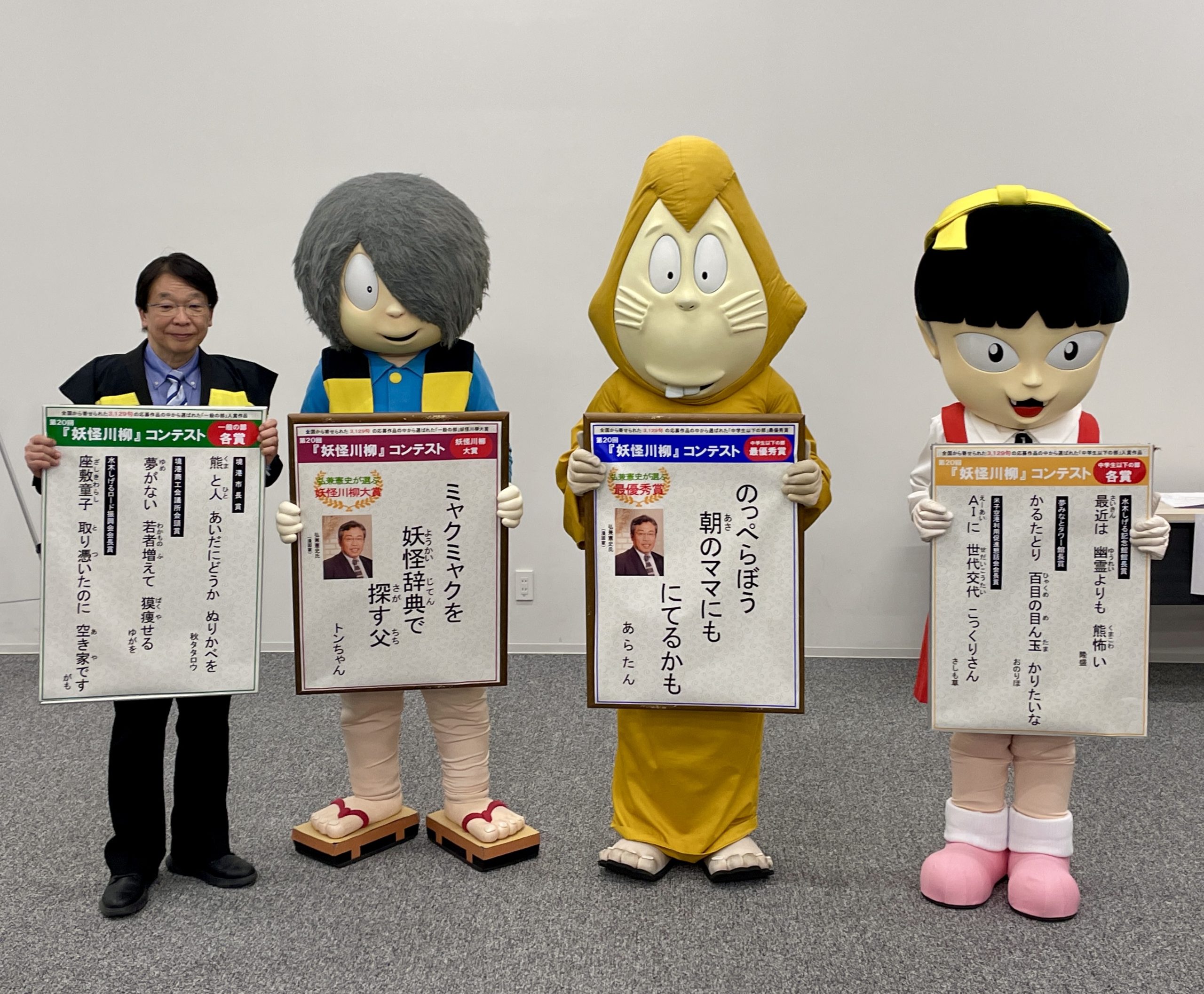 地元境港市内にある美哉(びさい)幼稚園の園児たちが、庄司行男館長に妖怪や新しくなる記念館のお話を聞きます!