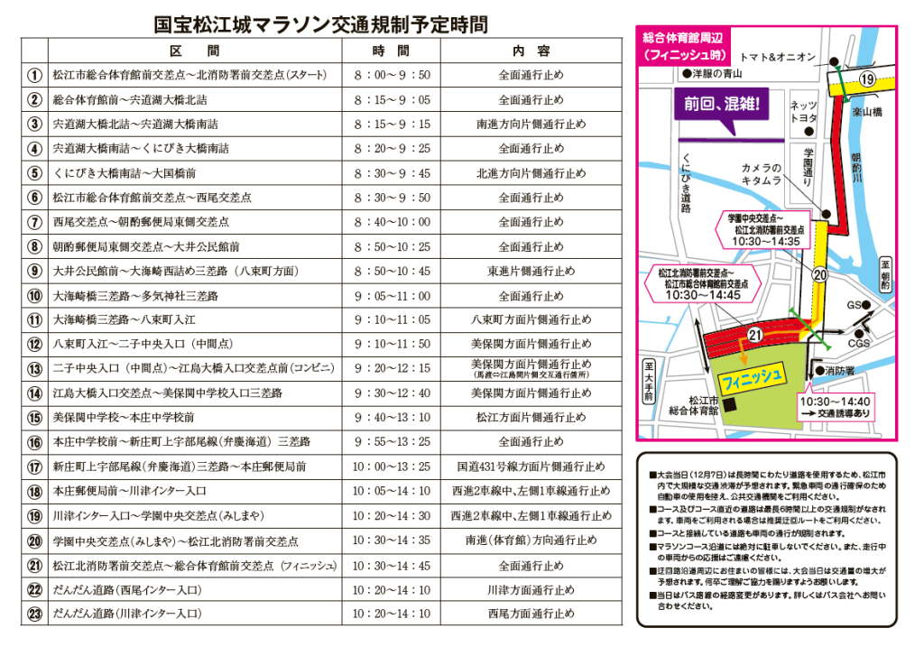 【国宝松江城マラソンに伴う交通規制について】