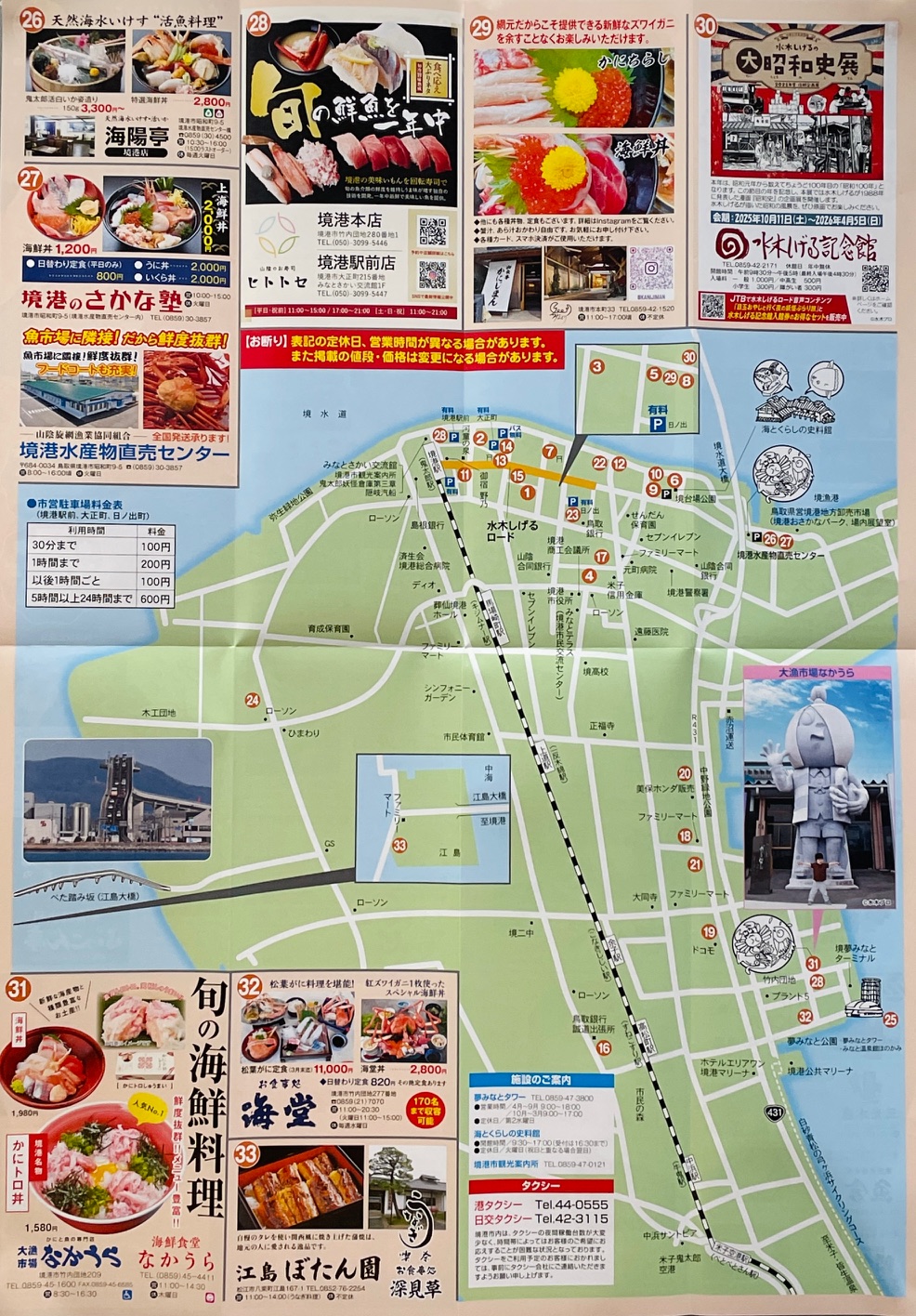 JR境港駅前の境港市観光案内所をはじめ、境港市や米子市などの観光施設や宿泊施設に置いてあります。