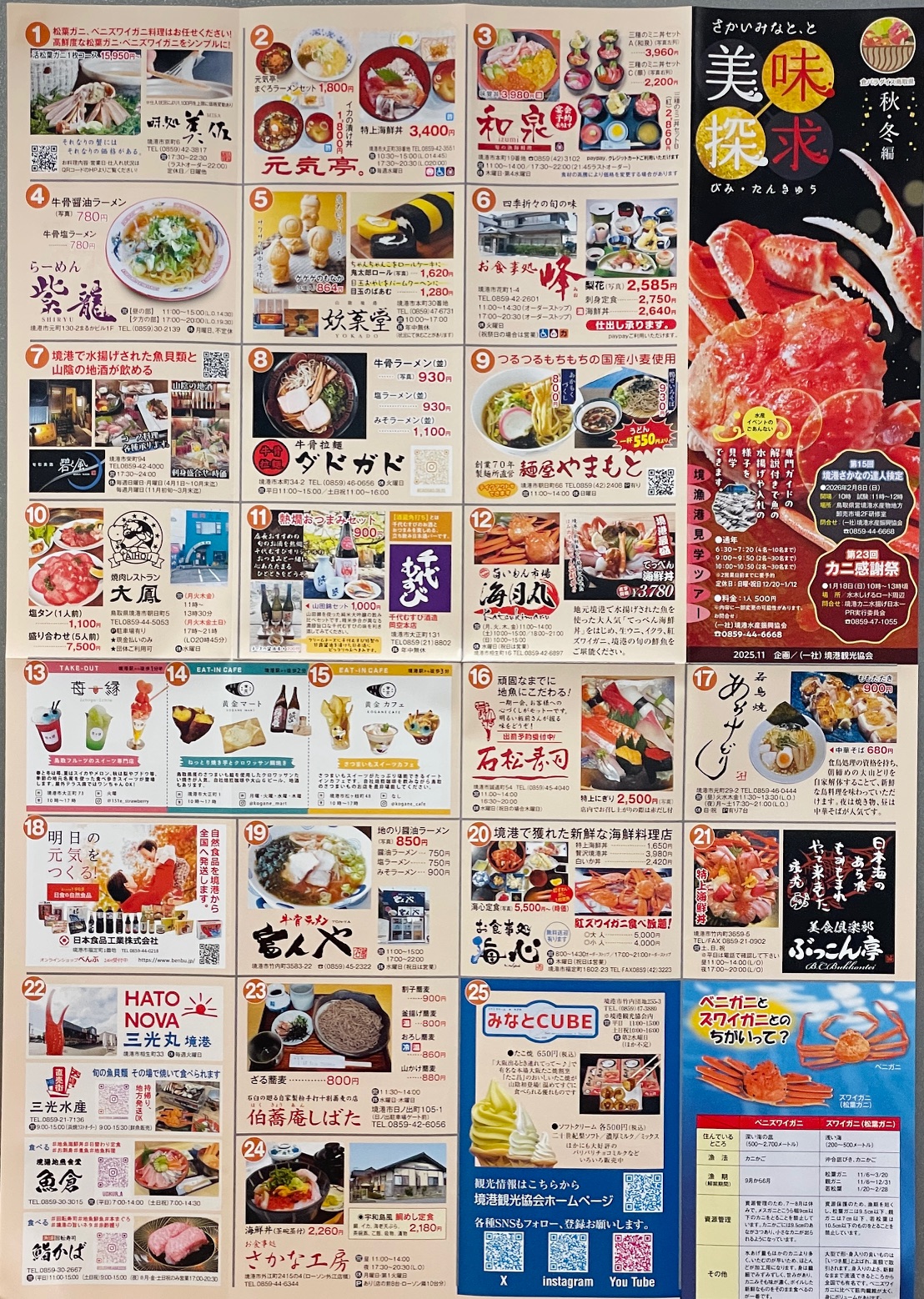 境港市内と周辺の飲食店を紹介した無料のチラシ「美味探求 秋・冬編」(B3サイズ両面フルカラー)が出来上がりました。